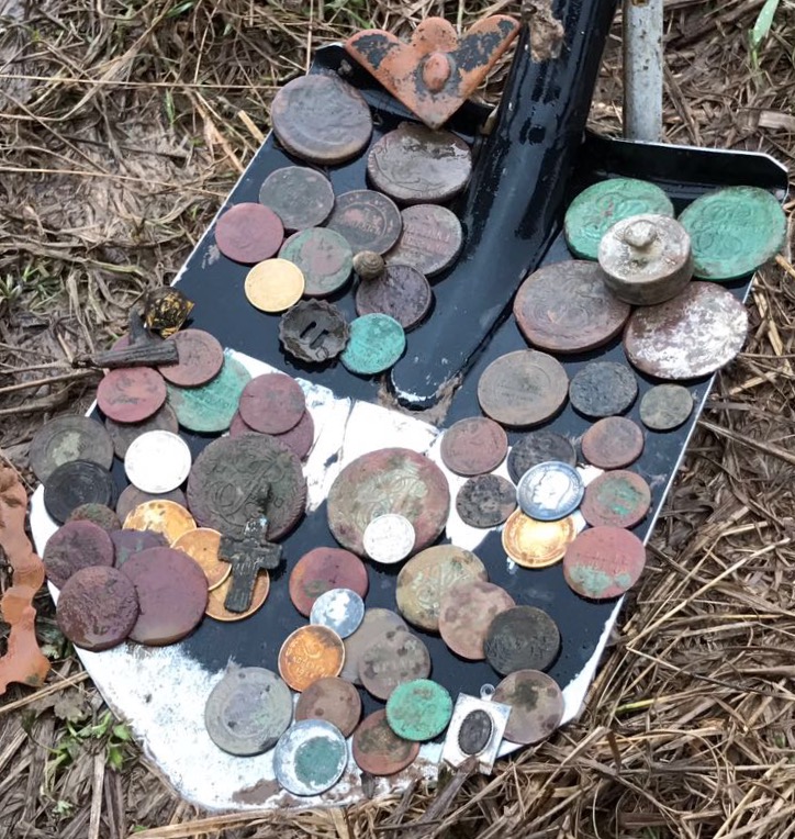 Доброго. , так у Вас на лопатке уже отодраиные монеты ......неужели в таком состоянии из под земли ?
