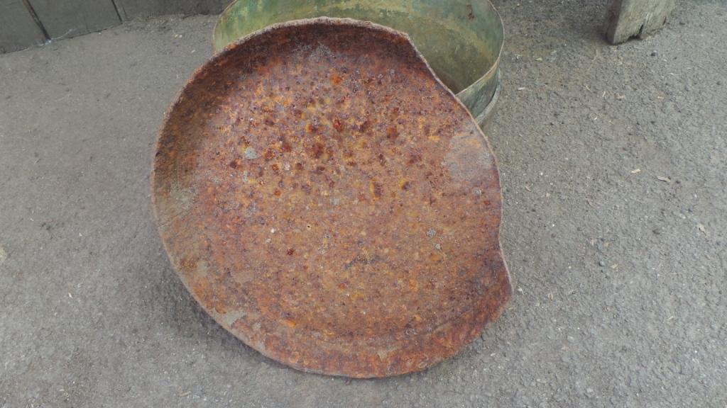 Всем привет, вот и у меня облом случился. Поймал сигнал глубокий цветной но скачет, думаю чугунок, но откопать то стоит. Первый второй штык на третьем штыке показалось что-то плоское, обкопав вокруг понял что это сковорода и она что то накрывает. Ещё немного откидал с боку увидел под сковородкой емкость. Думаю неужели первый за восемь лет копа клад! Вытащив сковороду понял что емкость(назову её кастрюля) пустая. Вот зачем закапывать кастрюлю на 60 см и накрывать её. Фото прилагаю, третье фото как всё лежало в земле. Кастрюля оказалась медной килограмм 8-10.