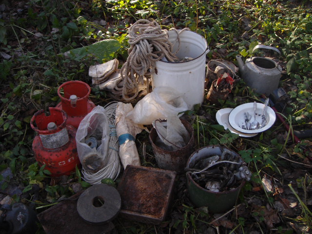 Был тоже случай, собрался на коп не рано, проверил прибор дома, всё на месте, работает, ну и сложил в рюкзак, и уехал на мотике в бывшую деревню за 5 км. Приехал на место, стал складывать прибор