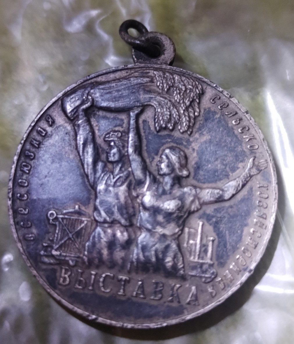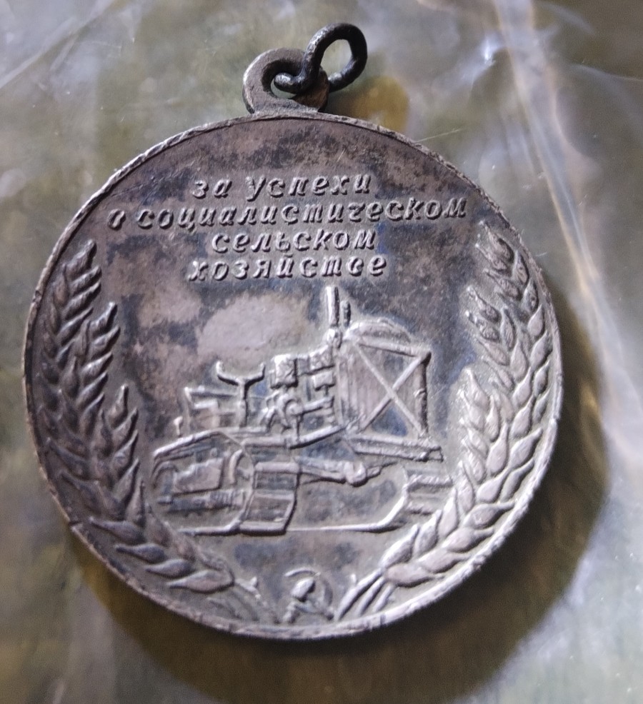 Серебряная медаль ВСХВ 1955 года (крест на радиаторе, без номера). Не понятно большая (32 мм) или малая (26 мм). Состояние далеко не люкс и нет колодки.