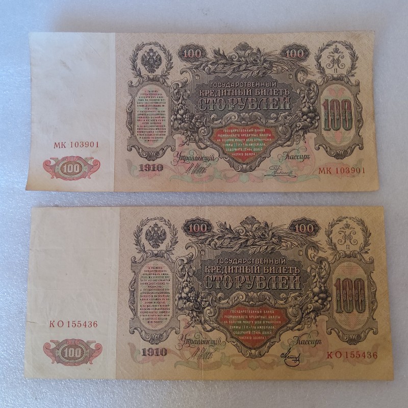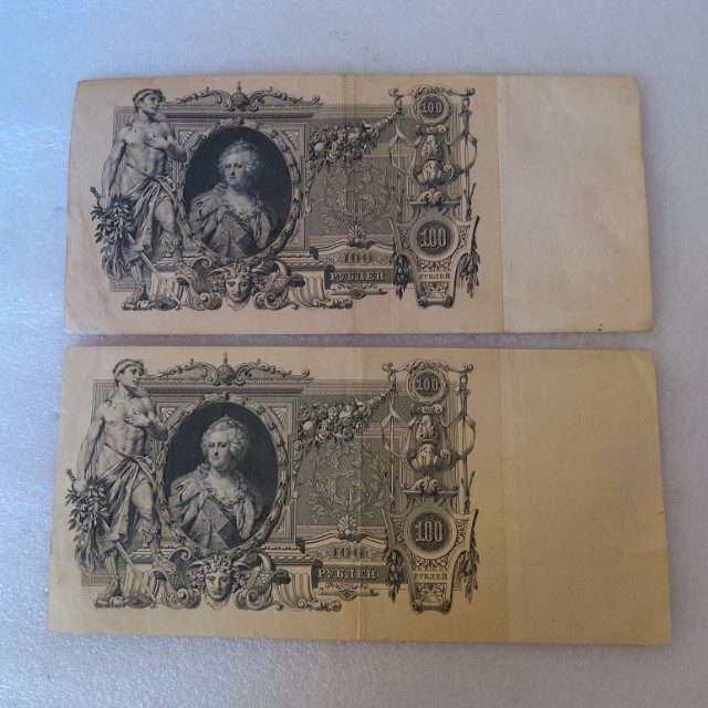 пара банкнот одним лота 100 рублей 1910 год Екатерина 2,бумага хрустит!