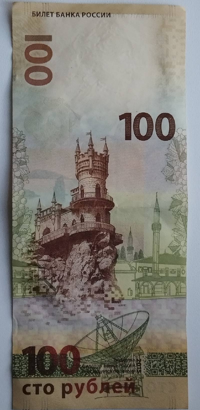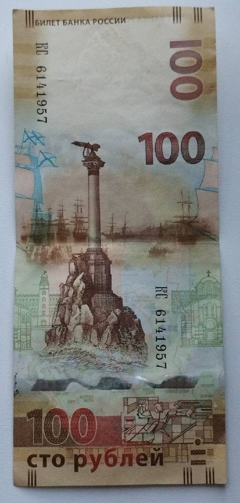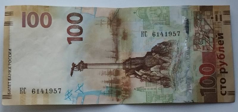 Сторублёвка с видами Крымского полуострова 2015 года. Серии "КС", "СК", и "кс" (серия замещения). Цена UNC 300 рублей (чуть дороже "замещенка"). Тираж ее достаточно большой - 20 млн. экземпляров.