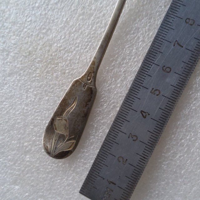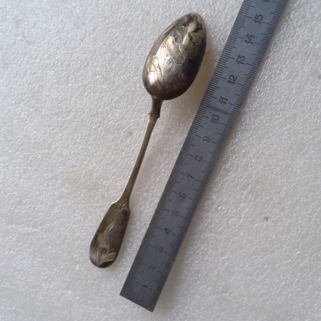 красивая чайная ложка серебро 84 пробы,отличное состояние,период ри,родная патина,вес-20,5гр, отличный предмет на подарок к 8 марта!