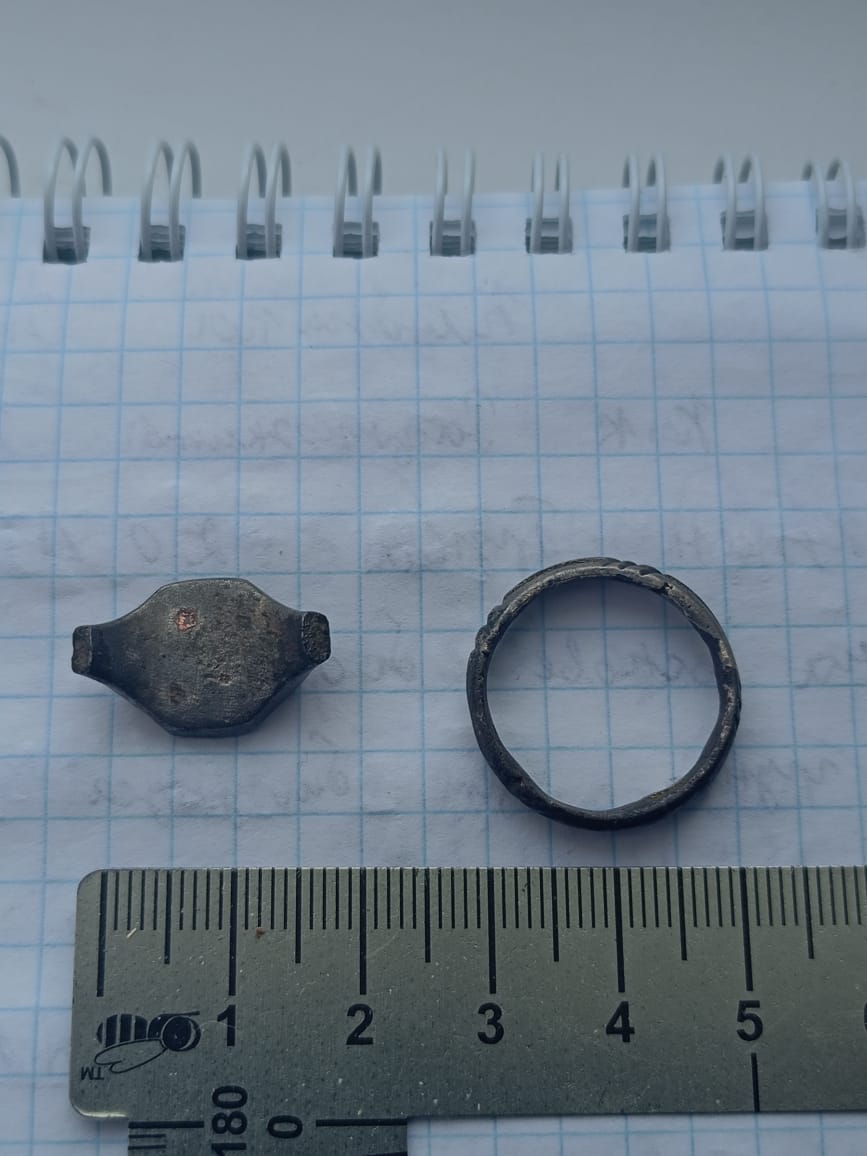 1. Вазон с цветком, 17-18 вв. 2. Кольцо с насечками, 18-19 вв. Принято датировать рубежом этих веков, так как археологами был найден вещевой клад на этот период с большим количеством колец этого типа. По цене очень недорого.