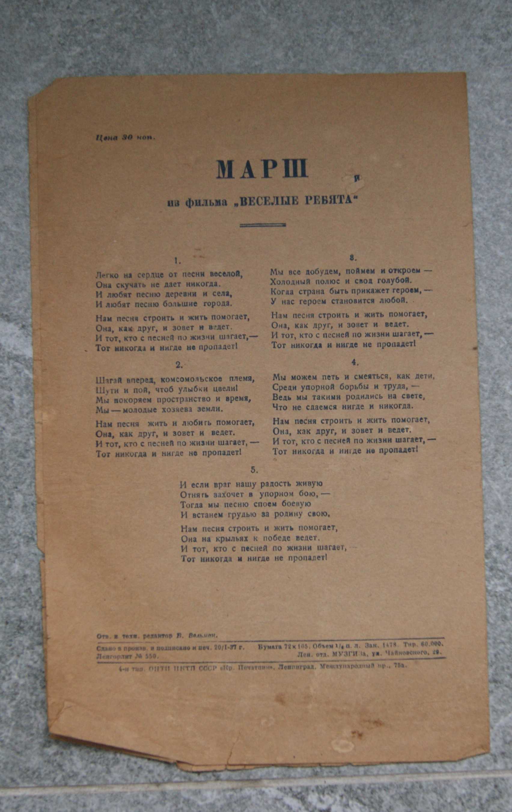Весёлые ребята.марш.И.Дунаевский. музгиз 1937 г формат А4-чуть больше-пополам-1 лист .имеет следы бытования. ..состояние постарался отразить на фото Старт 200 рублей Шаг -от 10 рублей Антиснайпер 10 минут многократно Местонахождение-Н.Новгород Пересылка-только по РФ,почтой,обсуждаемо,по затратам за работу почты ответственность не несу.но переживать буду. Оплата -карта СБ,предоплата Окончание-09.03.2026 в 22.00 по Москве ![]() ![]() ![]() ![]() Вложенные эскизы изображений |
