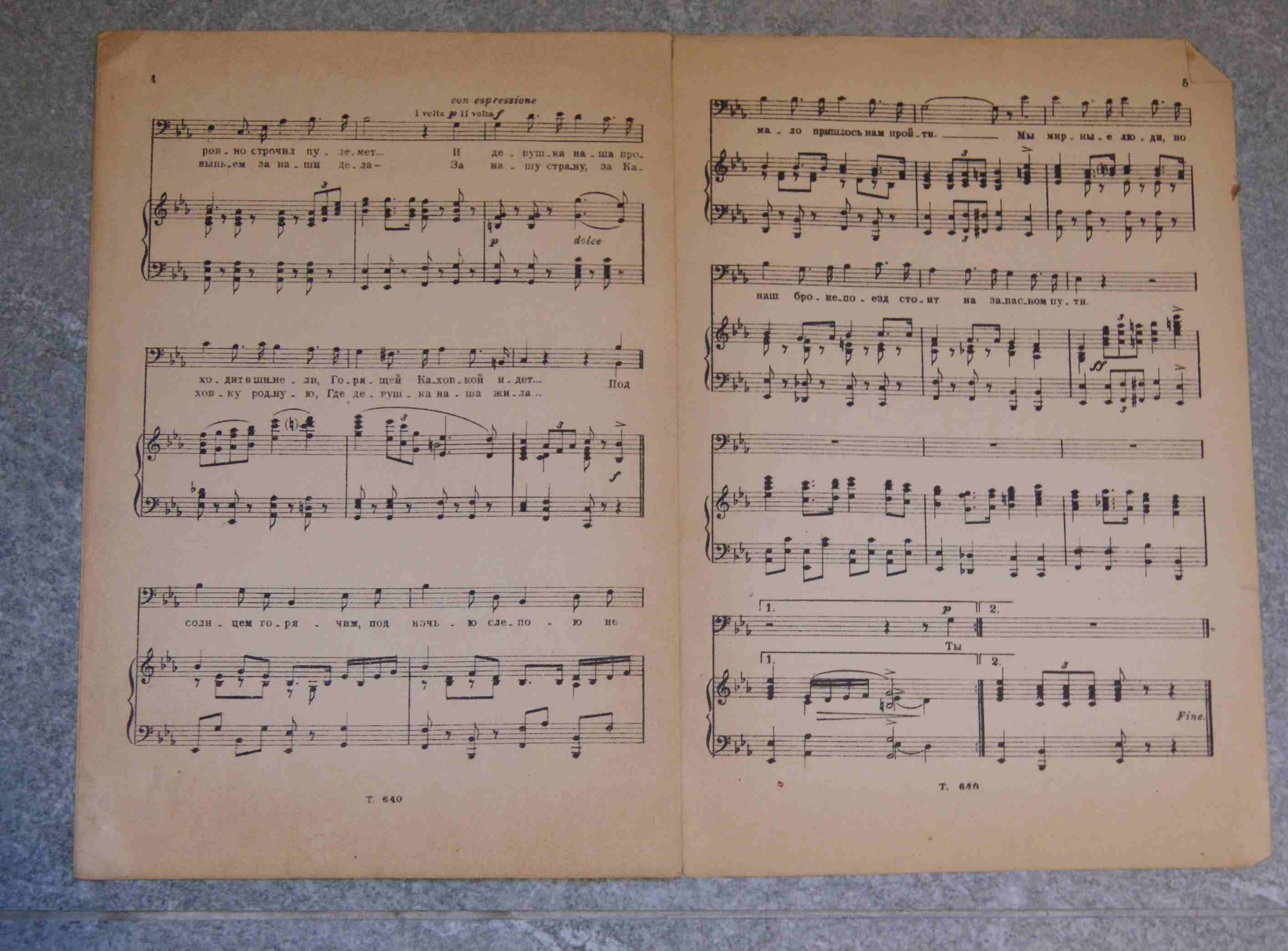 Три товарища.Песня о Каховке. муз И.Дунаевского.слова М.Светлова Тритон 1935 г год. все страницы.5 .не все скреплены. формат А4 чуть больше .имеет следы бытования. ..состояние постарался отразить на фото Старт 200 рублей Шаг -от 10 рублей Антиснайпер 10 минут многократно Местонахождение-Н.Новгород Пересылка-только по РФ,почтой,обсуждаемо,по затратам- оптимизирую,но принимаю решение сам. за работу почты ответственность не несу.но переживать буду. Оплата -карта СБ,предоплата Окончание-10.03.2026 в 22.00 по Москве ![]() ![]() ![]() ![]() Вложенные эскизы изображений |