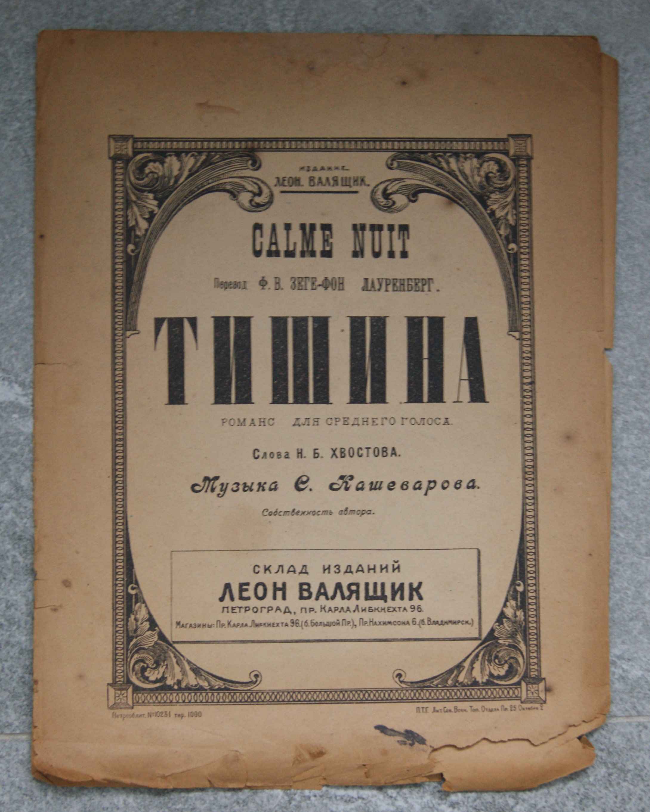 Тишина. Романс.. издание Леон Валящик. Петроград.ул.Карла Либкнехта 96. формат А3.страниц 5 .имеет следы бытования. ..состояние постарался отразить на фото Старт 200 рублей Шаг -от 10 рублей Антиснайпер 10 минут многократно Местонахождение-Н.Новгород Пересылка-только по РФ,почтой,обсуждаемо,по затратам- оптимизирую,но принимаю решение сам. за работу почты ответственность не несу.но переживать буду. Оплата -карта СБ,предоплата Окончание-11.03.2026 в 22.00 по Москве ![]() ![]() ![]() ![]() ![]() ![]() Вложенные эскизы изображений |