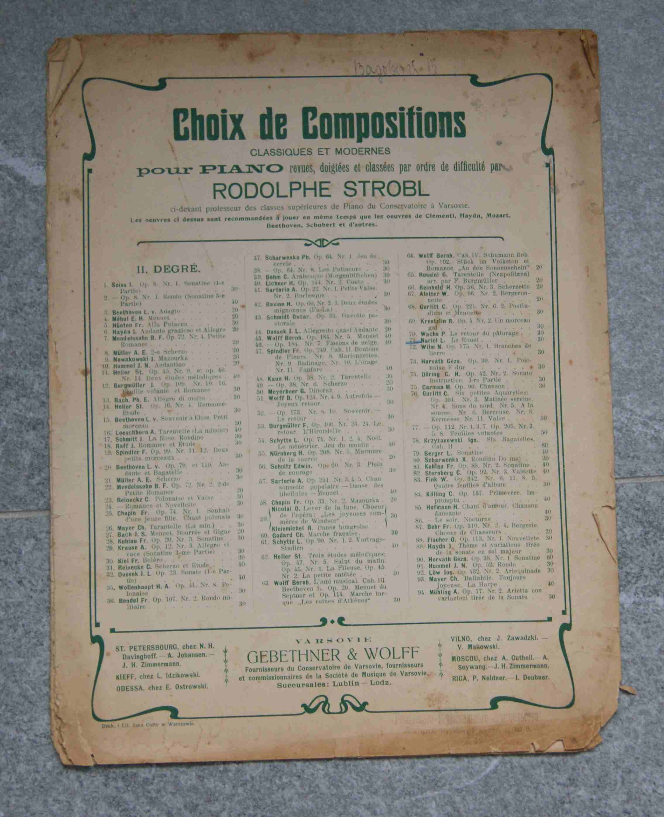 издание на иностранном языке.отпечатано в Варшаве.до 1917 года печать магазина(в правом нижнем углу) гласит- - нотный магазин.РоссIйского музыкального издательства.Москва.Кузнецкий мост.дом № 6 формат А3.страниц 5 .имеет следы бытования. ..состояние постарался отразить на фото Старт 200 рублей Шаг -от 10 рублей Антиснайпер 10 минут многократно Местонахождение-Н.Новгород Пересылка-только по РФ,почтой,обсуждаемо,по затратам- оптимизирую,но принимаю решение сам. за работу почты ответственность не несу.но переживать буду. Оплата -карта СБ,предоплата Окончание-11.03.2026 в 22.00 по Москве ![]() ![]() ![]() ![]() ![]() ![]() Вложенные эскизы изображений |