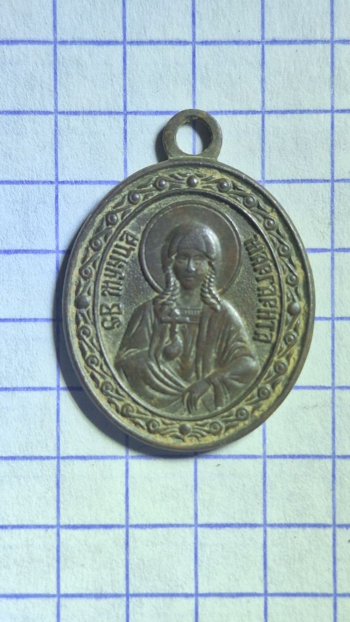 День добрый! По образкам. Первый, с образом великомученицы Марины (Маргариты) Антиохийской - современный. Подобные образки выпускаются целой "серией", можно посмотреть на OZON. Второй, с иконой «Похвала Пресвятой Богородицы», в таком исполнении (с Голгофским крестом на обороте) очень редок. Изготавливался для Троице-Стефано-Ульяновского монастыря (ныне территориально в Республике Коми) возможно, в г. Слободском Вятской губернии. Датировка, предположительно, последняя треть XIX века.