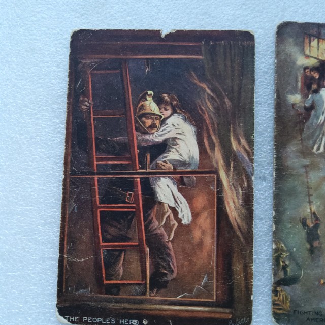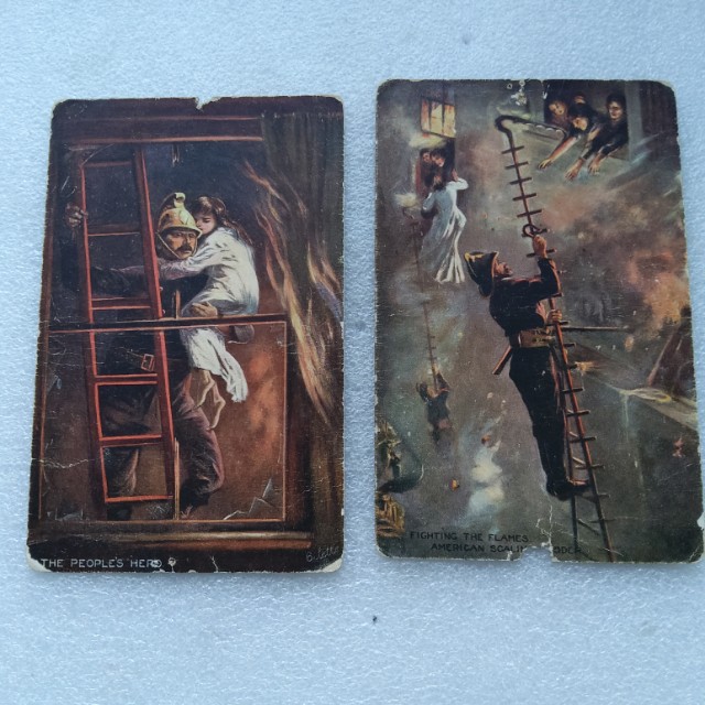 пара не частых почтовых открыток с изображением работы пожарных период ри