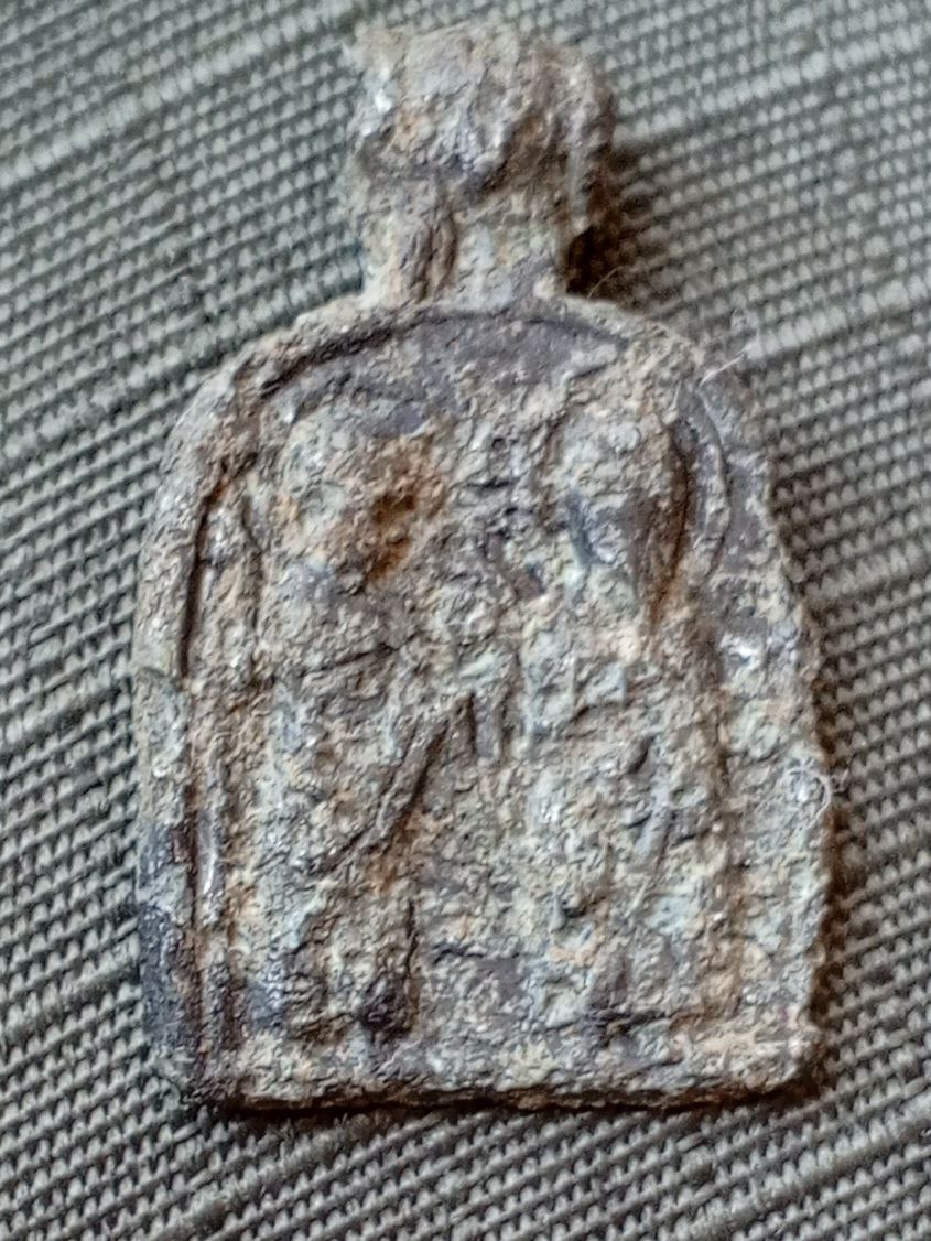 Всем здравствуйте. Среди шмурдяка попалась нательная иконка . Металл как понял цинк с остатками серебрения. Помогите определить святых и датировать . Икона подвергается чистки постепенно убирается лишняя нарость на фото заметно . Строго не судите немог сфокусироваться и сделать хорошие фото . Размер 28/16 мм .