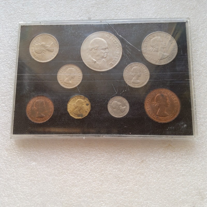 полный годовой набор монет великобритании с кроной Черчиль,выпуск 1965года в родной упаковке