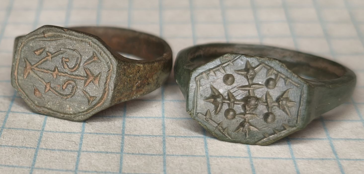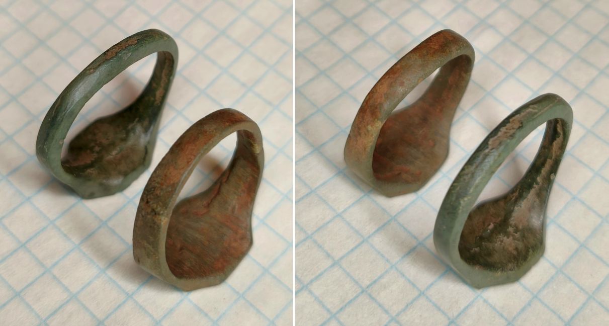 Растительный орнамент. Один в зеленой патине, другой - в коричневой. Диаметр шинки 18...20 мм. На одной шинке небольшая трещинка. Старт: 100 р. Шаг: от 10 р. Блиц: нет Антиснайпер: 10 минут неоднократно Оплата: по номеру телефона на карту банка. Доставка по чеку: озоном (примерно 140р.), почтой РФ. |