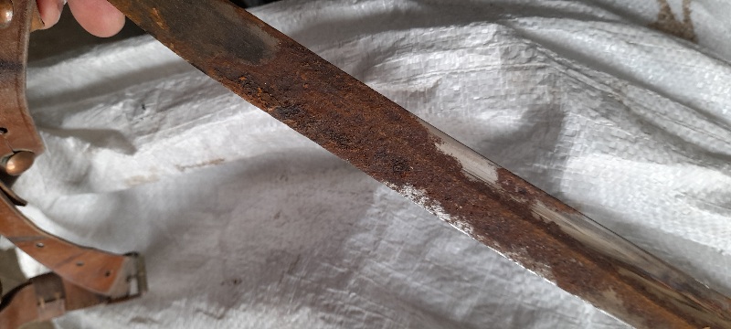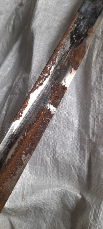 Ну насчет "коррозия не критичная" это Вы сильно погорячились: клинок никелированый, при снятии локальной ржи никель уйдет по всему клинку при глубокой полировке. А там где заканчивается дол, ближе к боевому концу будут глубокие каверны, которые потребуют, при их сглаживании, изрядного снятия металла при шлифовке, что затронет контуры окончания дола и геометрию выхода к боевому концу. Что в целом испортит всю малину.