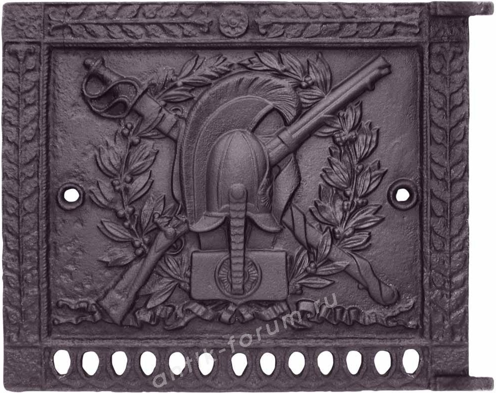 Читал, что подобного дизайна печные дверцы начали выпускать на каслинском заводе к столетнему юбилею войны 1812 года. По цене сказать сложнее, попадалось в районе 3-5 тыс. Загуглите: "печная дверца с военной арматурой". |