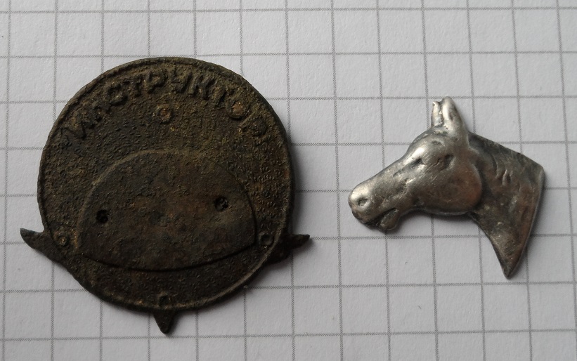 Здравствуйте коллеги . Необходима помощь в определении вчерашних находок . "Инструктор" предположительно латунь или бронза , " конь" серебро 875 пр. на тыльной стороне 2 клейма . Зарание благодарю за подсказки .