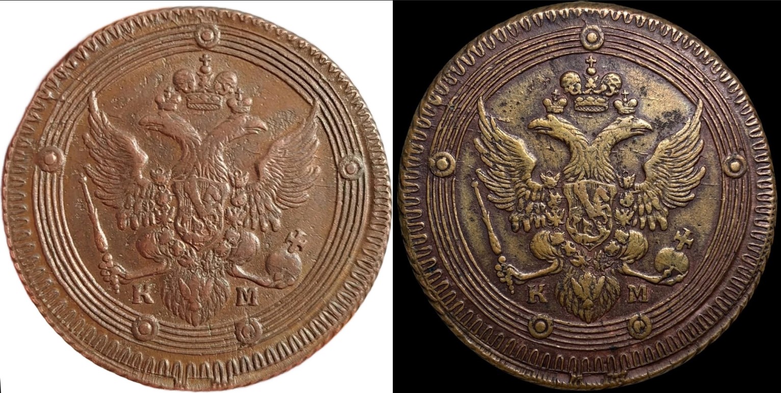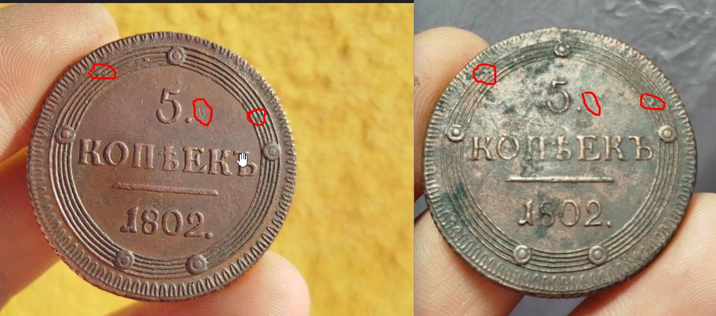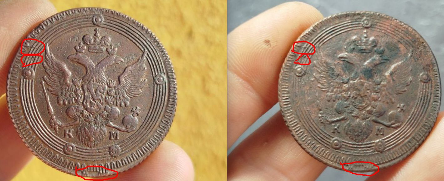 Приветствую. Я не оч большой спец в этих хитрых делах, но знаю одну копию, она широко распространена. Красным обвел точные совпадения. И получается, либо монета ТС является оригиналом, с которого один в один сделали матрицу для фуфла, либо...увы, это ее сестра родная