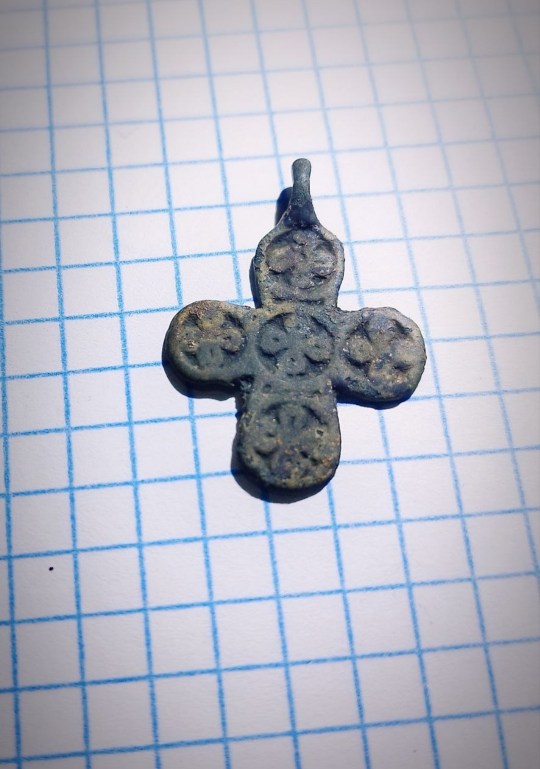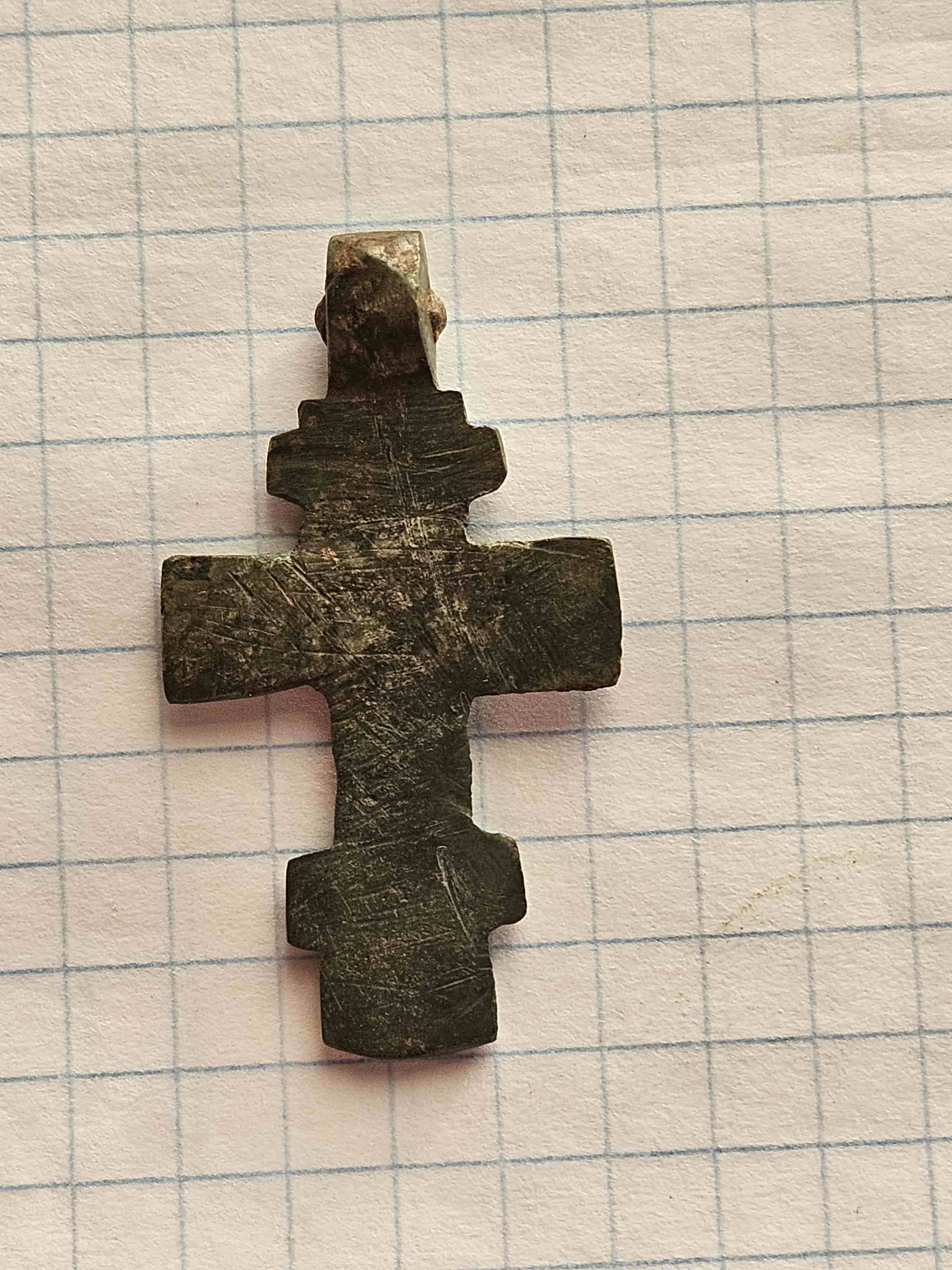 QUOTE(Хрейдмар @ Mar 29 2026, 13:59) Добрый день. Крест редкий на 14 век. Напиминает мне Смоленский тип. На аук с 10 тыр. Обычно смоленскими (мстиславскими, мстиславльскими) крестами называли квадратноконечные кресты конца 14 — начала 16 века из Белоруссии, северной Украйны и западной России — но там совсем другое, совсем-совсем... -------------------- Лучше обнаружить в яблоке червяка, чем его половину...