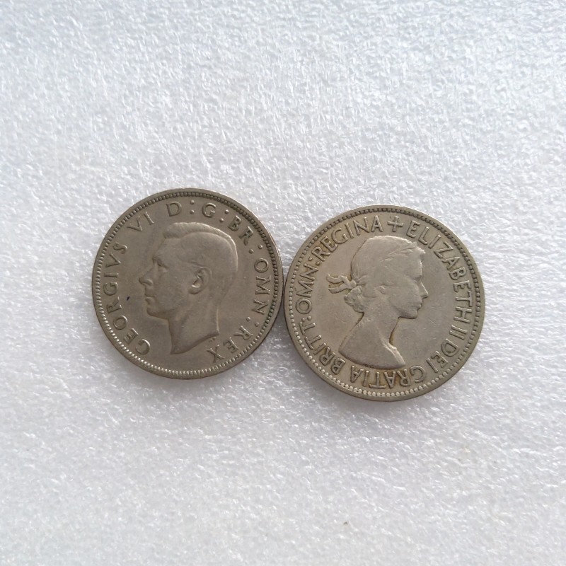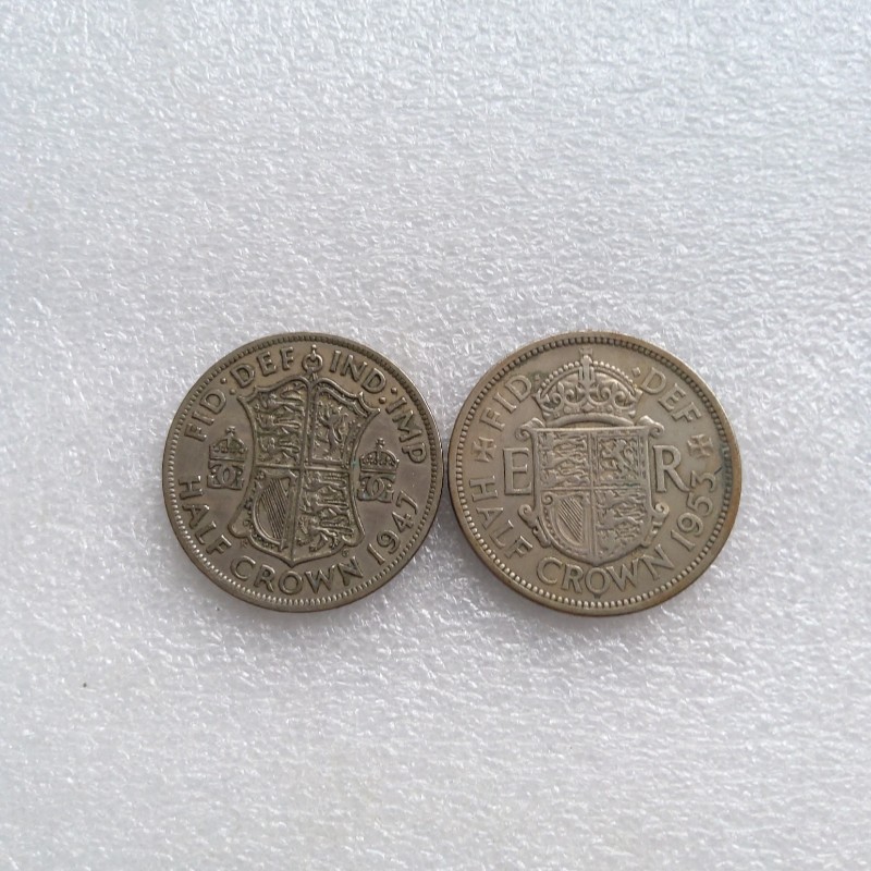 два типа монет англии : полкроны 1947года с Георгием и полкроны 1953года с Елизаветой
