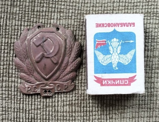 Один из вариантов знака на головной убор (не кокарды) рабоче-крестьянской милиции.