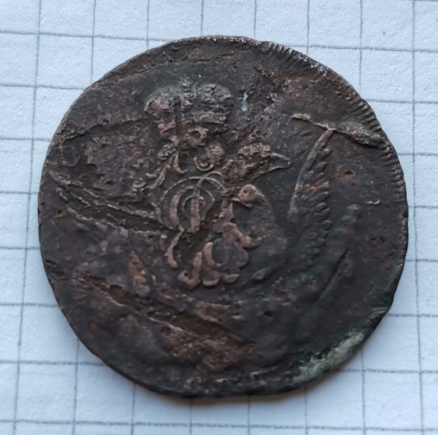 Доброго времени всем! Планирую выставить на аукцион. Соотношение сторон перевёрнуто на 180 градусов. СПБ, гурт сетка. Найдена на дне Волги Тверской области. Виден перечекан с крестовой. Подскажите будет ли интерес к данной монетке и ориентировочную стоимость?