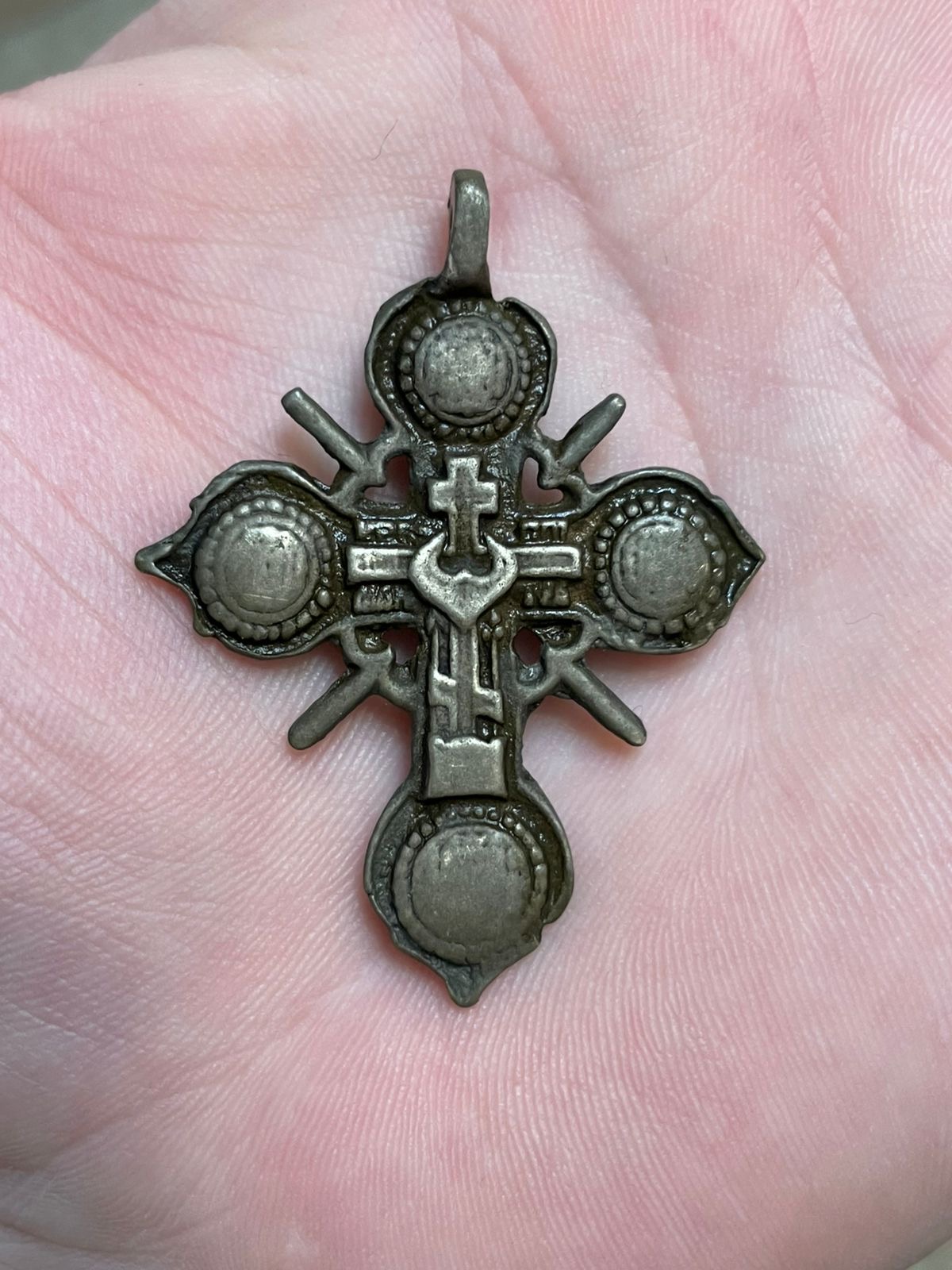QUOTE(Dixxx @ Apr 4 2026, 07:18) Обратка Обратку от другого креста показали, коллега... Покажите ту, которая от того, который в первом посте. Укажите, пожалуйста, размеры (в мм, просто цифрами напишите, линеек не нужно), и, по возможности, район Татарстана. Заранее признателен. Сердцевидноконечный крест 18-го века. ![]() Сообщение отредактировано Калинин: Сегодня, 07:55 -------------------- Лучше обнаружить в яблоке червяка, чем его половину...