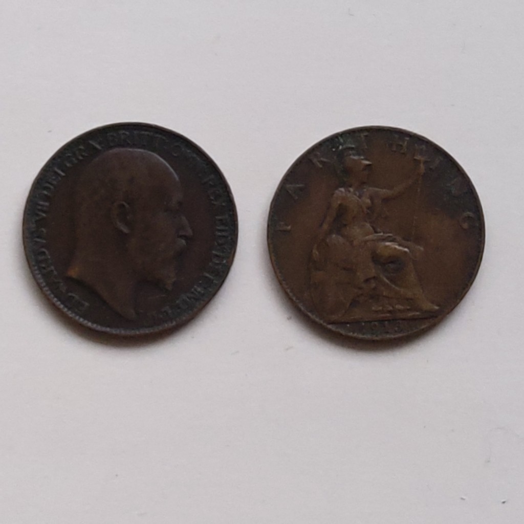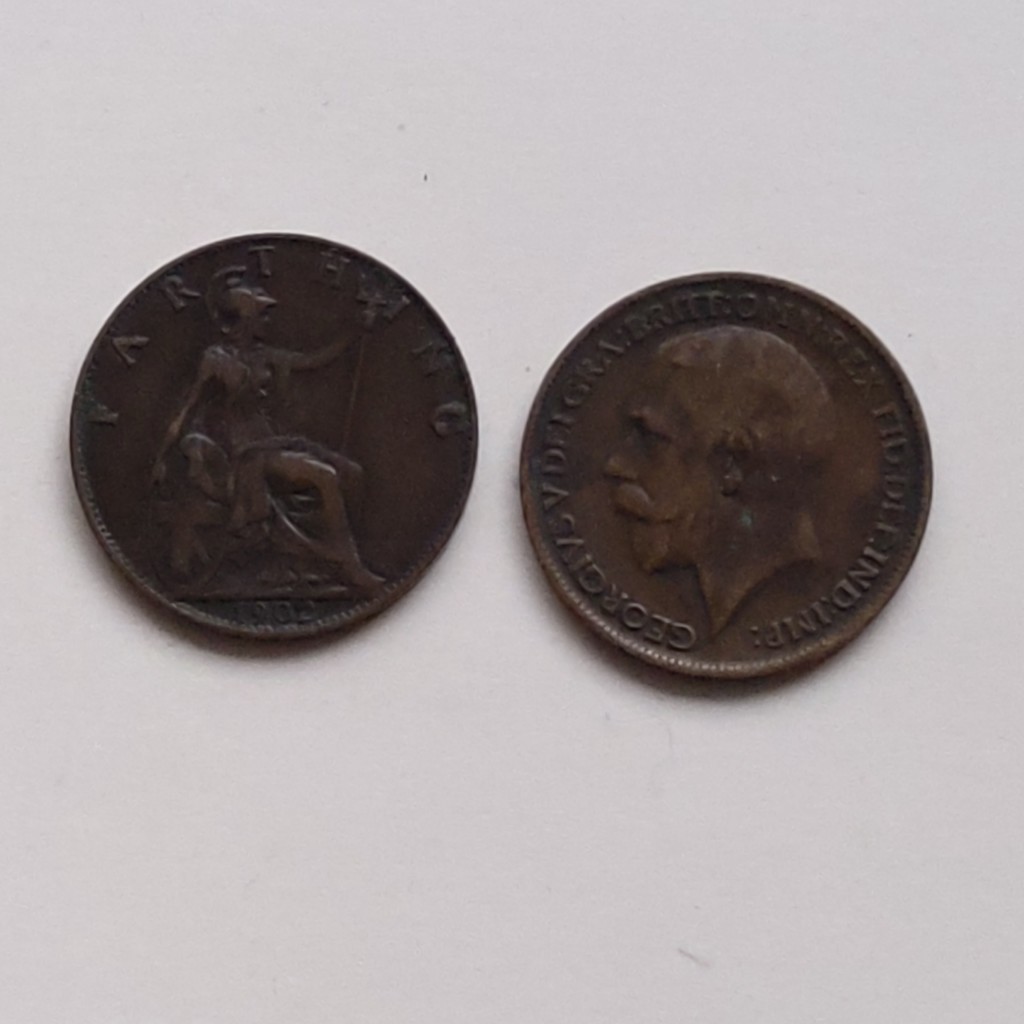 лот монет англии: фартинг 1902 года Георг 4+фартинг 1913 года