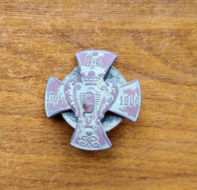 Вчерась, при добирании распашки чешуи, нам попался такой вот знак. Как говорится, неисповедимы пути Господни.. В "сети" нашел вроде, что это знак в память 200-летия 98-го пехотного Юрьевского полка. Хотя на знаке номер 97. Тут видимо какая то загадочная история)) Подскажите пожалуйста, какую ценность может представлять он на аукционе? Вложенные эскизы изображений -------------------- «Из прошлого надо брать огонь, а не пепел»
