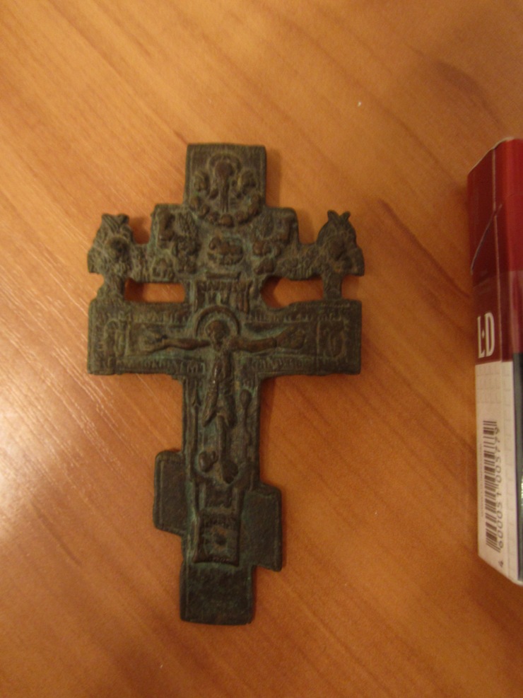 QUOTE(Axt @ Apr 20 2013, 09:33) Жень, это навершие от иконки, сюжет Троица, выше Образ Нерукотворный. По датировке восемнаха, ценности не представляет. На перстеньке единорог, выложи на опознание. Это оттуда, где промокли? Верхний луч наперсного креста 16-17вв |