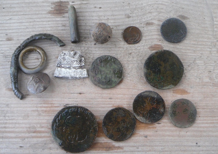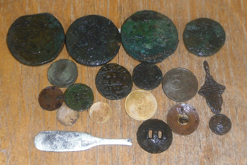 сегодня был в поле на рыбалке так всякая мелочь.лиш полушка 1856 года клюнула