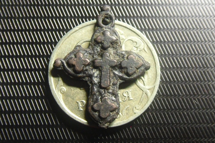 QUOTE(Axt @ Sep 9 2013, 21:20) Первый католик, должен быть двусторонний, цена символическая. Второй вообще непонятно что. Третий южнорусский крест, в наших местах нередко встречается. Второй это крест с головного убора священослужителя. Поднимал такой же с синими камешками |