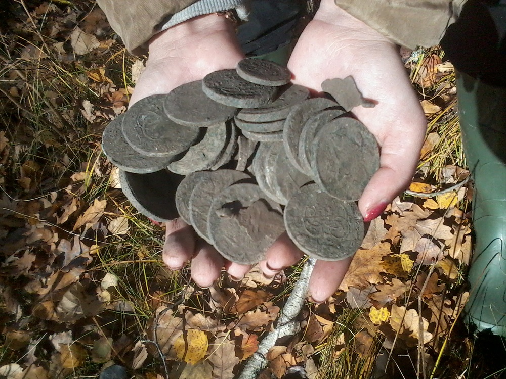 да вырвался в три года мучимое мной место,словил сигнал,очень слабый,практически глюк,мороз утром был,вся трава подглючивала, я даже не знаю почему задержал внимание на одном из них, снял штык,все равно глюк, снял другой и тут как понеслось,три пятака в отвале....куб вниз,куб в стороны...и вот,24 пятака и три двушки...если б небыло недельной неудачи,я б на этот писк и внимания не обратил бы...а тут вымучил сигнал - и на тебе...сижу протираю...