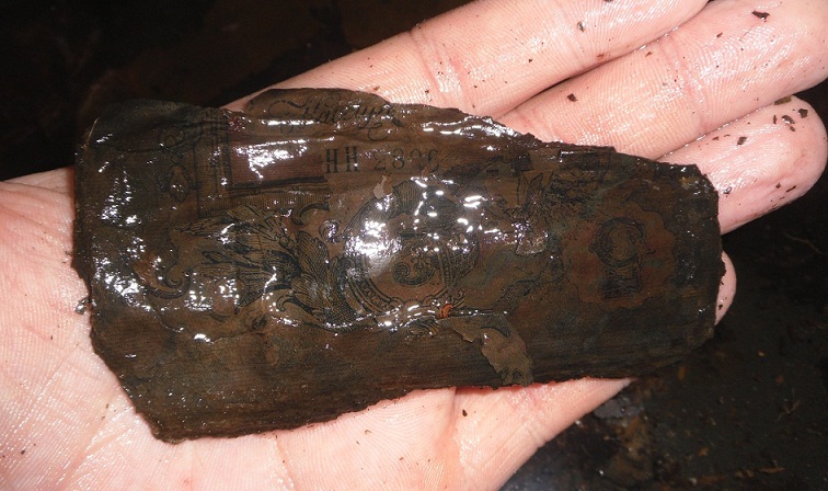 Сегодня после обеда выскочили у меня пару часиков свободного времени... не думая куда его потратить, взял лопату и побежал копать монетки. Приехал на место, спросил разрешения у местного жителя на поругание его огорода и услышав положительный ответ рванул на огород. Огород сразу скажу не понравился, куча железа и фантомов. Как потом оказалось огород этот разбили на месте свалки царских времён. С одной ямки вытянул кучу керамики 18-нач.20 века и стекла того же периода, но увы делать шурф по среди огорода мне не кто ни разрешит. Вобщем решил пробежаться я по верху. Как говориться "Лучше пробежаться и не чего не найти, чем потом жалеть что не пробежался" И вот ближе к концу огорода моя Тёрка 705 выдаёт мне чёткий согнал 48. Ну думаю пятачёк Катин или ржавый чугун. Вогнал Фискарь я в землю матушку и услышал звук скрежета металла о лопату. Ещё и хрен подцепишь. Ну думаю точно чугун железный. Глядь! А вывернул то я медный кувшинчик, да ещё и с посеребрением. Взял вытряхнул всё из кувшина увидел только кучку пепла и пару слипшихся бумаженций. Взял положил в пакет эти "слитки" и пошел копать дальше. Дальше выскочила боратинка и порадовал образок, но увы не сфоткал. Приехал домой, сразу закинул бумажки в воду и вот что там оказалось. Страховка на имущество движимое и недвижимое. Пятирублёвые купюры времени Николая II. И ещё какие-то карточки на 20 рублей, керинки я так понял. И ещё, помыл дома кувшин и выскочил год "18О62". В кружочке я так понял клеймо. Кстати везёт мне на кладики с бумажками .... Это уже второй такой. Первым был чугун 7 литровый полностью набитый денежками бумажными. Во... эх! Ссылочку сайт блокирует Сообщение отредактировано Arkon: Mar 30 2014, 20:30 Вложенные эскизы изображений -------------------- Душу – Богу, Жизнь – Родине, Сердце – Девушке, МЕТАЛЛОИСКАТЕЛЬ – НИКОМУ! ! !..