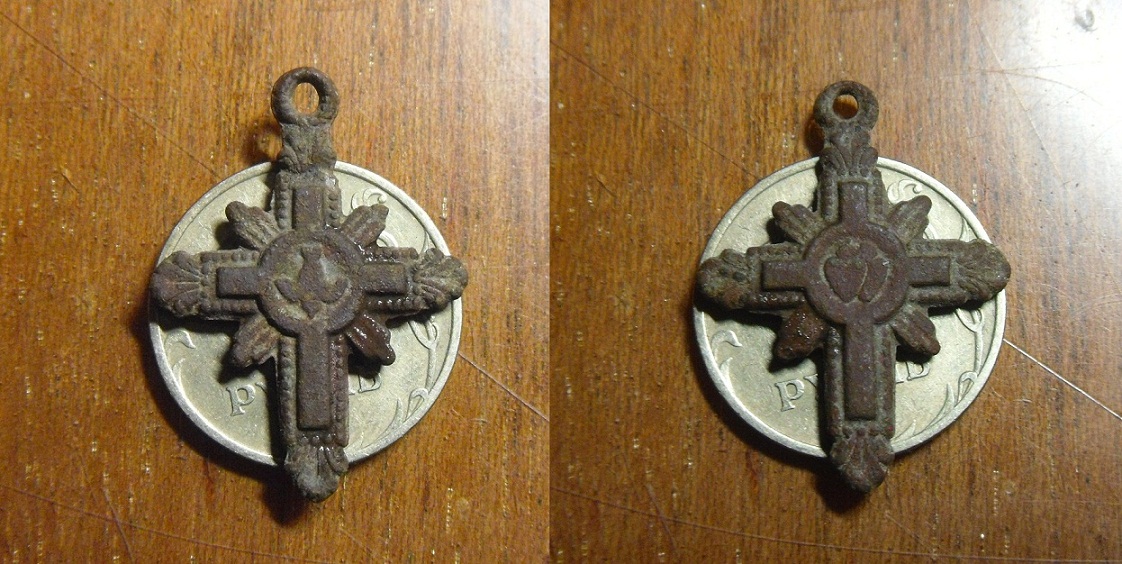 А вот такой крестик нашел в прошлом году осенью. Вложенные эскизы изображений -------------------- Душу – Богу, Жизнь – Родине, Сердце – Девушке, МЕТАЛЛОИСКАТЕЛЬ – НИКОМУ! ! !..