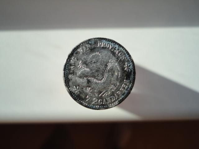 QUOTE(jurcha @ Apr 25 2014, 09:32) Вот попалось вчера . Не могу понять монета или жетон Доброе утро! Это китайская монета-10 центов провинции Кванг-Тунг,серебро, примерные годы хождения 1890-1908(если ошибаюсь коллеги поправят)....по цене -оставте ее себе "на память".... -------------------- ...Времена меняются.Постоянно лишь ожидание лучших времен.....