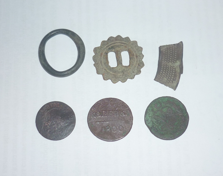 Всем привет! погода сегодня была прекрасная, жаль в поле не влезиш решил поехать пошурфить один домик в лесу, мы с товарищем ездили неделю назад нашурфили 7 монет А1, приехал в лес, вышел из машины -красотища: птицы поют, травка зазеленела и выросли декабоьские грибочки!, вобщем нашурфил сегодня ещё 7 монет начали попадаться и Елизаветенские двушки.