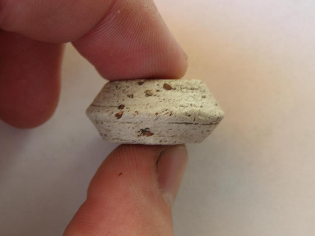 QUOTE(anhelika @ May 10 2013, 11:48) Rusaled, сделайте пожалуйста фото свежего скола ( просто разломите фрагмент керамики пополам и сфотографируйте скол, чтобы хорошо был виден состав керамического теста и качество обжига), а еще желательно фото пряслица, фрагменты керамики с орнаментом и еще несколько венчиков в профиль. По данным фото точно сказать трудно ( мало информации), но можно предположить 12-13 вв. Хотите точнее давайте фото. Спасибо, фрагменты сколов сделаю чуть позже, пока вот - пряслице |