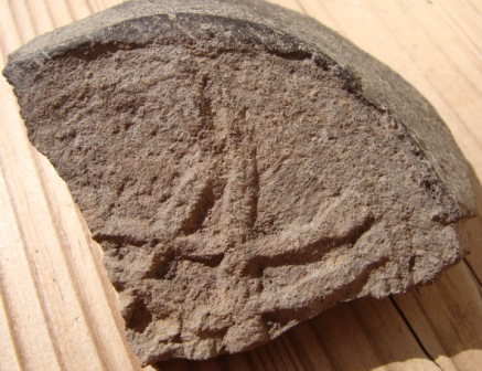 QUOTE(пилигримм @ Aug 26 2013, 20:44) Здравствуйте! Скажите ,пожалауста , какого периода этот осколок ? Это тоже солярный знак? Найден на юге МО , (сопутка от домонгола до Грозного) не далеко от предыдущего фрагмента. Фрагмент донца с клеймом в виде пятиконечной звезды (пентаграммы). Керамика домонгольская 12-13 вв. Тоже солярный символ. |
