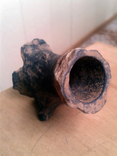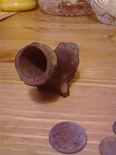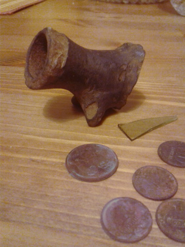 Копал в деревне,исчезнувшей вроде как во время чумы 1771 года (люди все умерли и её сожгли). Много осколков керамики. Нашел горлышко с ножками от какого то сосуда. Интересно,что за сосуд был?
