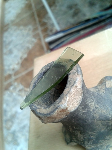 Также нашел кусочек стекла. Толщина около полутора миллиметров, слегка кривое и много вкраплений воздуха. Тоже интересно-это окно или от посуды.Буду благодарен за консультации. Вложенные эскизы изображений -------------------- Место для написания очередной глупости)