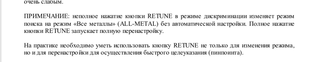 Выше маленькая фотка,там описано)А я поначалу не понял,что с прибором происходит после нажатия кнопки...У вас же бандит?Что можете сказать по прибору?Я например не смог отстроиться от грунта в алметале ,а в авто без проблем,у вас так же?