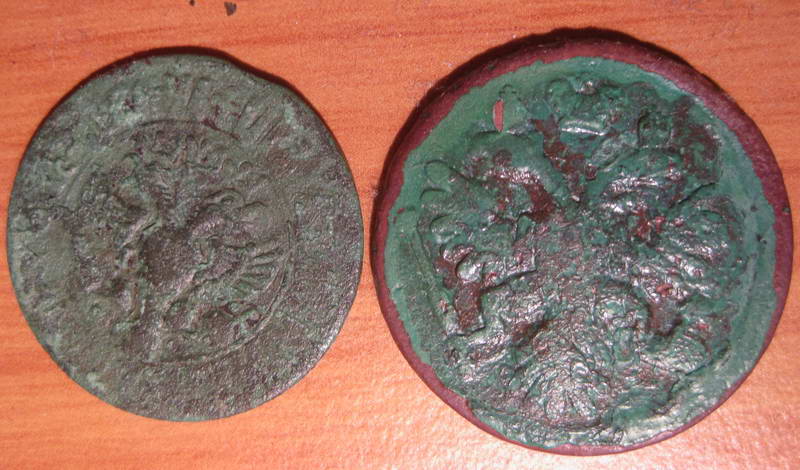 И что вообще будет если монеты оставлять в зелени и наростах? Я не напрягаюсь насчет супер тонкой очистки. Четыре монеты как пример того что в альбоме. Две денги это те, что хотелось бы почистьть. Как это лучше сделать или может так и оставить? петровской денги вот здесь фото побольше: денга Вложенные эскизы изображений |