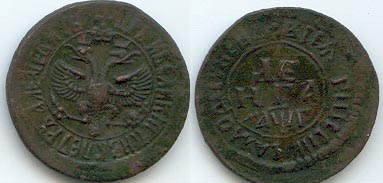 На счёт выпрямления копейки – полопается зелёная патина. По блестящим, промыть спиртом и запатинировать (марганцовка плюс медный купорос). Окисляющий раствор: 50 г/л сернокислой меди и 5 г/л маргацевокислого калия. Сначала в горячей воде растворяют медный купорос, затем добавляют марганцевокислый калий. Предмет, предварительно смоченный водой, несколько минут выдерживают в растворе. В зависимости от продолжительности обработки поверхность приобретает красивый коричневый цвет различной интенсивности." На счёт пяточка, не знаю, толи поле подровнять (стёркой), но только не до появления блеска. А может оставить так как есть? По фото сложно судить. Ну и покрыть воском . Пи.Си. Самое сложное – это исправлять ошибки. -------------------- Границы реставрации заканчиваются там, где начинается гипотеза