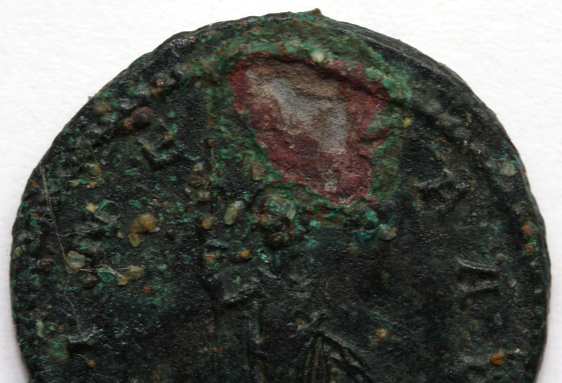 Antonio81 Вы были правы, на верхней средней монете песок в верхней части легко отколупнулся, но под ним оказалась здоровая язва