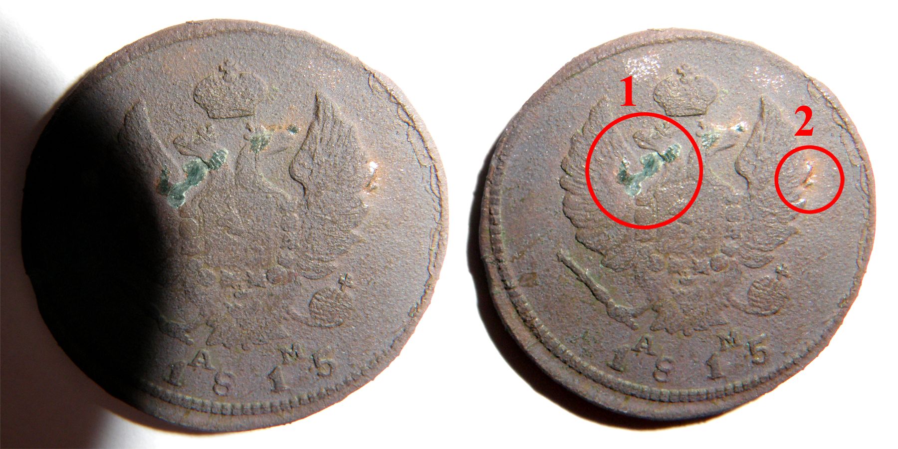 RGF вашей двушке не надо не каких координальных мер.Я вам уже выше писал.Скажу даже более,правда не на 100%,так как не держал монетку в руках,ваше поле может сровняться,если шероховатая поверхность окажется из рыхлого,не сформировавшегося куприта.Аккуратно,шабером попробуйте в каком нибудь месте.Не надо будет не патинировать и не чего делать.Остатки оригинальной поверхности не срезайте,а аккуратно тоже расчистите.\цвет у монетки будет коричневый.После этого не мойте монету,а только смахните мягкой кисточкой.Я такое поле,обрабатываю,покрыв Паралоидом.Предварительно всё проверив на болезни.Потом воск правильный.Он сгладит тоже не ровности.