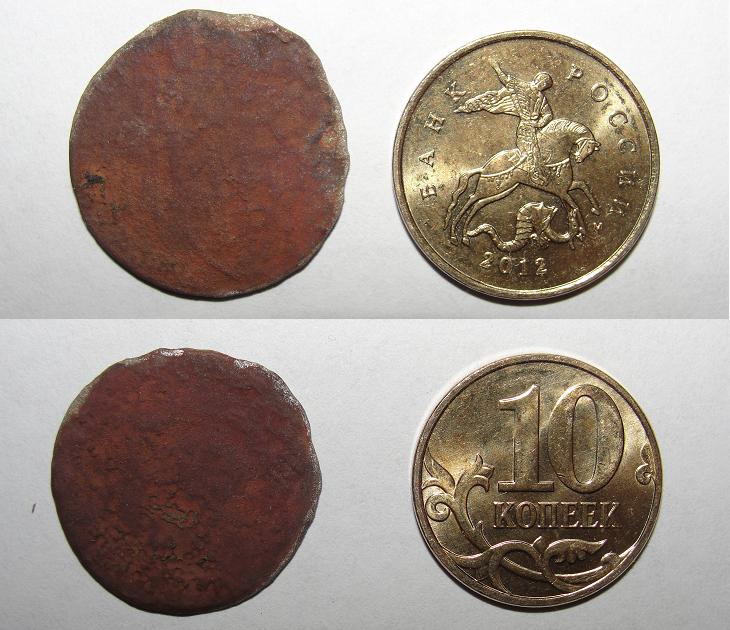 Доброго времени суток! Нашел чудо-монету. Ранее таких находок не было. Монета очень тонкая. Покрыта бурым налётом (возможно куприт). НО! под ним по краям просматривается белый металл... возможно серебро! как такое может быть? Впервые сталкиваюсь с таким. Если присматриваться (на фото не видно) присутствует непонятной формы орёл. Есть подозрения что какалик не русский. Чем снять налёт?