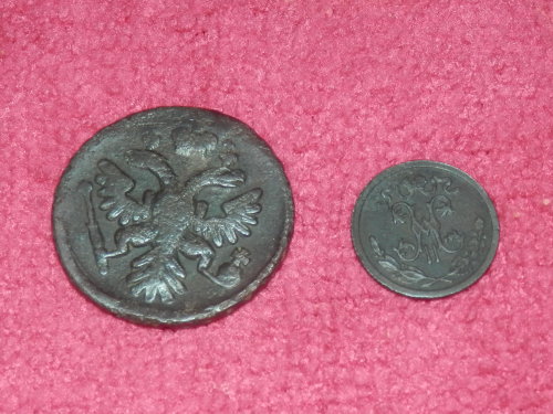 Вместо вазелинового попробовал оливковое масло.запах исчез , но хлопот с монетами при чистке в горячем масле меньше не стало. при температуре масла 130-140град надо постоянно смотреть за процессом, как только масло начинает обретать бурый цвет, снимаю с плитки и даю остыть. промываю в мыльном растворе.начинается самое сложное. надо определить как глубоко масло разлушило окислы. как было сказано ранее, иголкой или шабером счищаю рыхлую окись , если нет раковин, то мою просто губкой с мылом. если есть то дальше только механическая чистка шаберами. но в итоге если патина не равномерна то обезжириваю монету и полторы- три минуты в растворе серной печени. когда высохнет, протираю скипид_аром в котором растворен натуральный воск, потом протираю тряпочкой . так как ни разу не видел монеты с кабинетной патиной, сам не знаю какой должен быть идеал. учусь. вот фотки, что у меня получилось. хотелось услышать мнение.