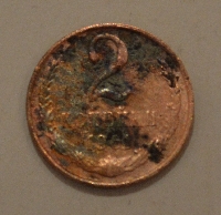 QUOTE(Angellip @ Feb 20 2013, 15:26) 20 копеек продолжает париться в уксусе. с суботы. судя по виду лежать ей там ещё столько же если не больше. держу уже ради самого эксперимента, хотя видно что смысла в нём ноль. А яблочный уксус разбавлял еще или нет? С неразбавленным 6%(вроде бы) - всё ОК. Правда, раз в пару дней вытащил и щеточкой. Ну а про соду... Трилон - рулит) Уксус - рулит) Кислота - рулит) Только по разному. Вот и ищем самый удобоваримый результат. Те же Николаевские медяки - в чём чистить? Стоимости в них - 0,0. Вам в чем больше нравится? Сообщение отредактировано Saranskii: Feb 20 2013, 14:51 -------------------- Меня как копаря раздражают две категории людей - алкоголики и гармонисты.