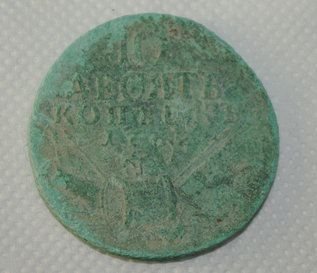 QUOTE(СемьТриПять @ Oct 26 2013, 22:26) Фотки, что выше, сделаны в боковом свете. Если не заморачиваться с освещением, монета выглядит так: Монета сложная.По фото, может только экстрасенс да Землекопатель ответить Есть утери по краям.Сами не чего не сделаете.Самое простое, это закрепить Паралоидом 3-5% и оставить так. -------------------- Если кому нужен, пишите на почту rarik177@rambler.ru