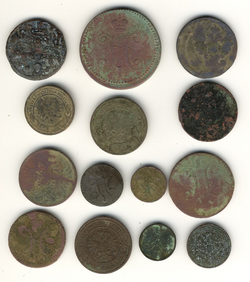 QUOTE(McSim @ May 11 2014, 13:03) Всем доброго времени суток! Ветка очень большая. Вопрос к спецам, как обработать каждую монету, чтобы как- то окультурить? Ничего с ними не делал. Сутки лежали в дистиллированной воде. Заранее спасибо. Не надо больше воды.Всё что мона, то уже отошло.Из того, что можно посоветовать, так это про денгу. Её надо зубочисткой слегка пошкрябать и потом щёточкой смахивать с водой белый песок. -------------------- Если кому нужен, пишите на почту rarik177@rambler.ru